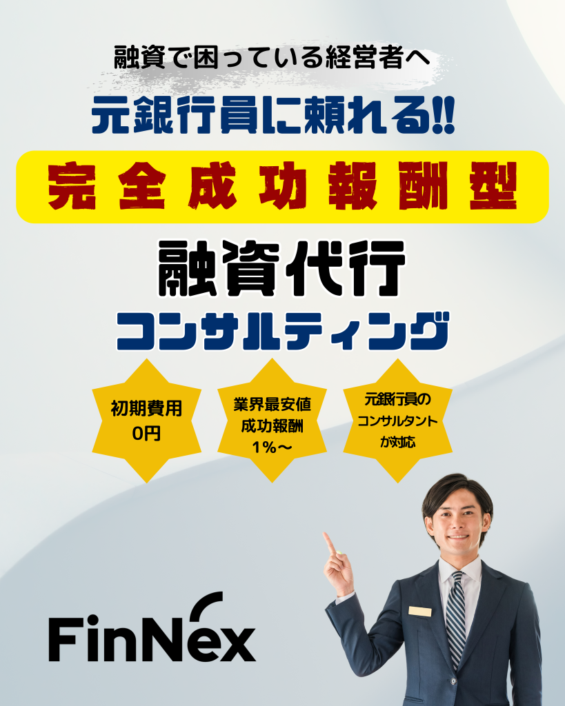 | 資金繰り支援 融資支援 銀行対応 事業計画書作成 決算対策 節税対策 財務体制の構築 定期面談等 | 月額5万円~ (個別見積り) ※コンサルティング契約先は資金調達報酬の優遇あり |